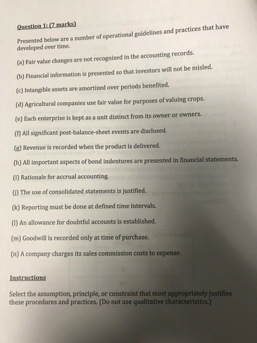 Solved Question 1 7marks Presented Below Are A Number Of Chegg Com